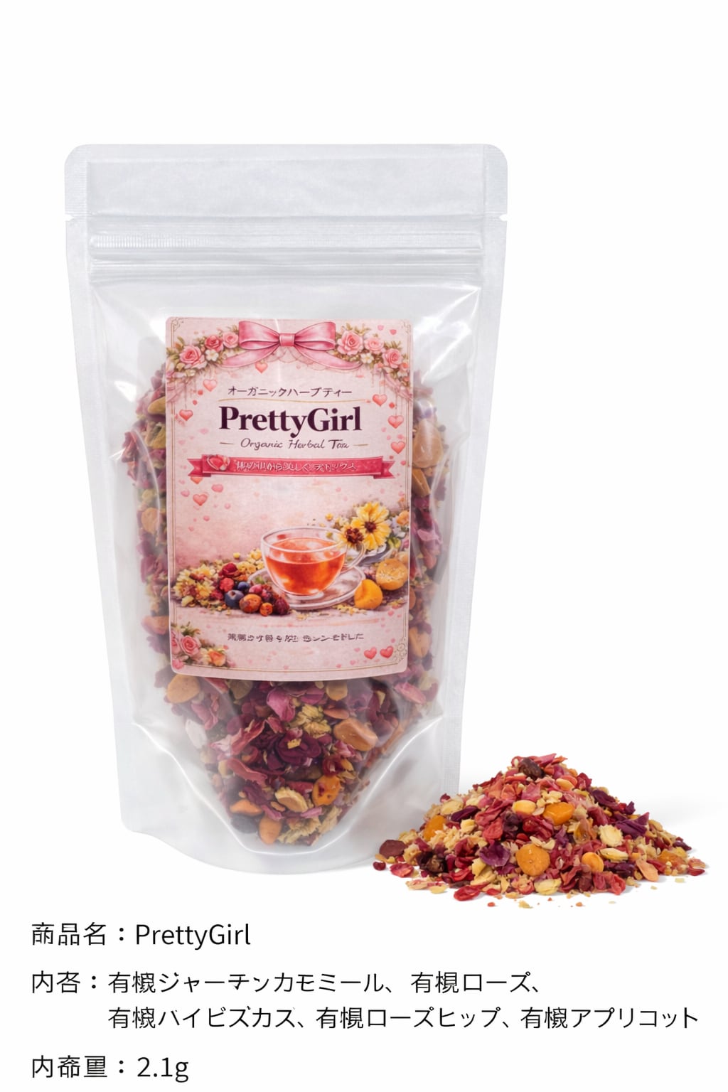 PrettyGirlは、華やかな香りとフルーティーな味わいが楽しめる、オーガニックハーブティーです。
